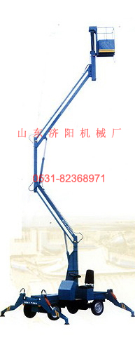 一、產(chǎn)品說明:曲臂式升降機(jī)是山東濟(jì)陽機(jī)械廠最新研制的高空作業(yè)設(shè)備,具有操作簡單體積小,重量輕,價格便宜,外形美觀、作業(yè)面積大、移動方便,特別是能夠跨越障礙物進(jìn)行作業(yè)等優(yōu)點(diǎn)、是理想的登高作業(yè)設(shè)備。廣泛應(yīng)用與車站、碼頭、賓館大廳、倉庫、車間以及供電和建筑裝璜等部分需要高空作業(yè)的場合。