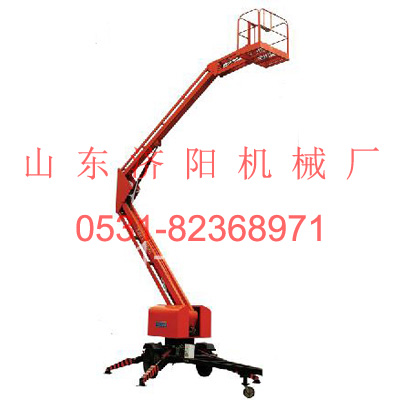 該系列升降機(jī)主要用于室外高空作業(yè)。折臂結(jié)構(gòu)緊湊,采用新型優(yōu)質(zhì)型鋼,強(qiáng)度高、重量輕、架設(shè)速度快,具有自動(dòng)液壓支腿,工作臺(tái)既可升高又可水平延伸,還可旋轉(zhuǎn)。可采用交流電源啟動(dòng),易于跨越障礙物到達(dá)工作位置,是理想的登高作業(yè)設(shè)備。該系列升降機(jī)廣泛用于市政、電力、路燈、公路、碼頭、廣告、廠礦車間大范圍作業(yè)。